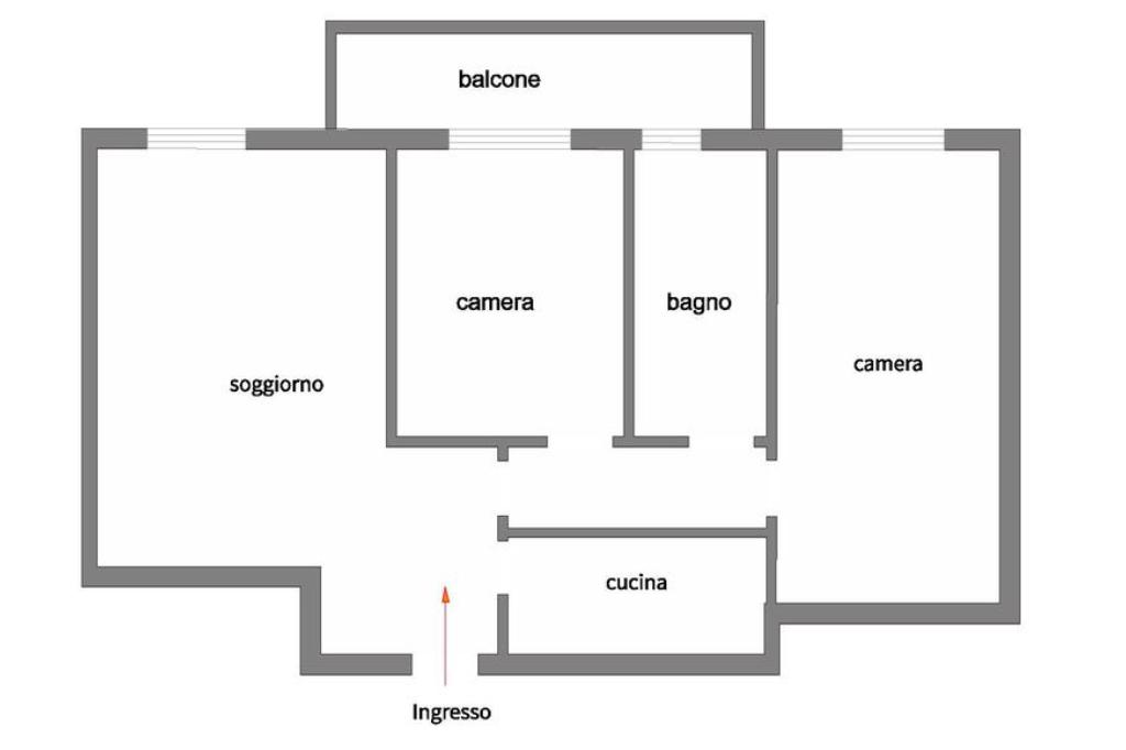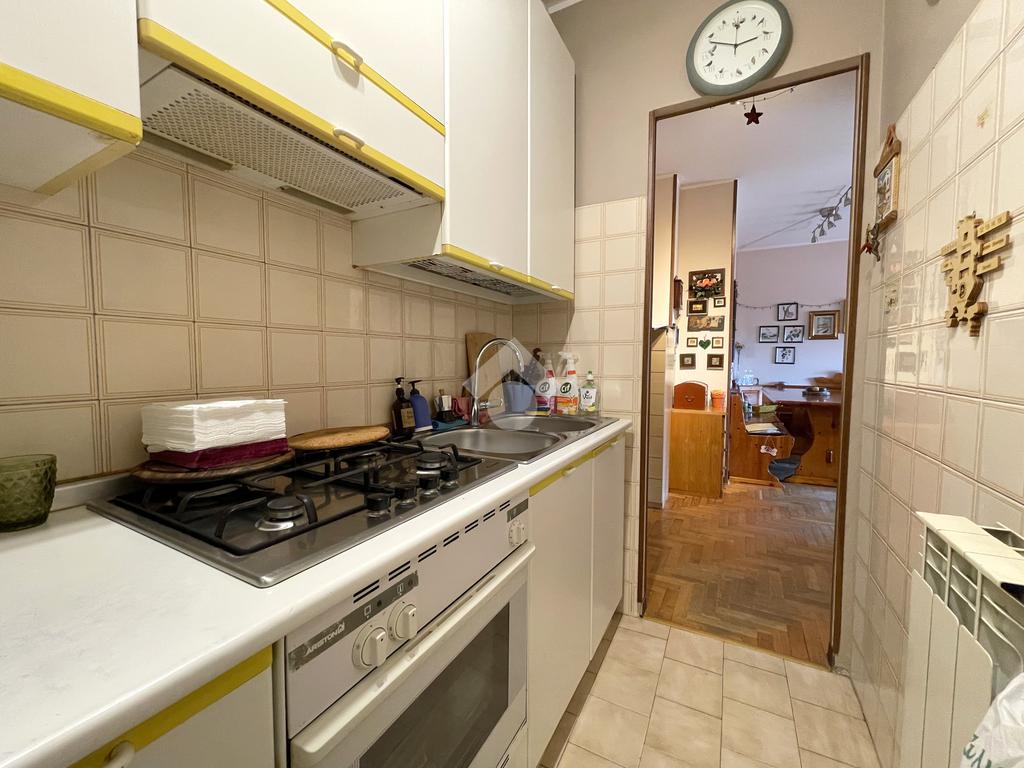 Zona notte: un disimpegno conduce a due camere da letto spaziose e a un bagno finestrato con vasca. È presente inoltre un balcone sulla cameretta.
