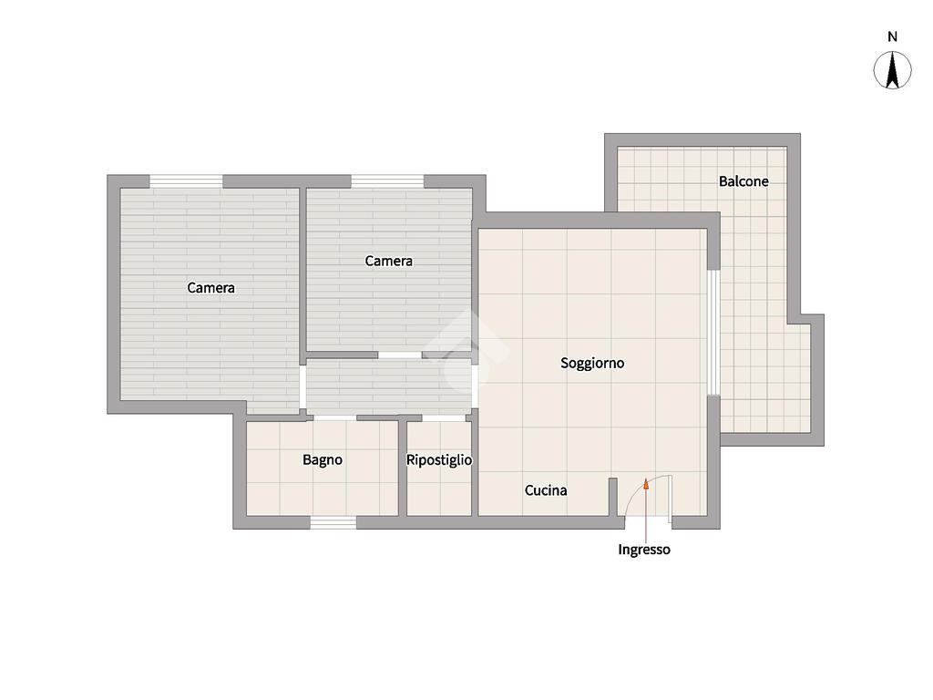La tipologia proposta è un taglio di tre locali, composto da soggiorno con cucina a vista, camera da letto matrimoniale, cameretta, bagno, ripostiglio e balcone.
