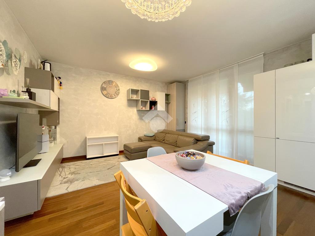 L'appartamento che proponiamo si trova al primo piano di una palazzina costruita nel 2015 e la zona di ubicazione è tra le più verdi e moderne del paese. Infatti negli ultimi anni è stata oggetto di una totale riqualificazione in quanto oltre alle costruzioni residenziali sono state realizzate ampie aree parcheggio e una grande area parco che collega, attraverso piste ciclabili e pedonali, al centro del paese.